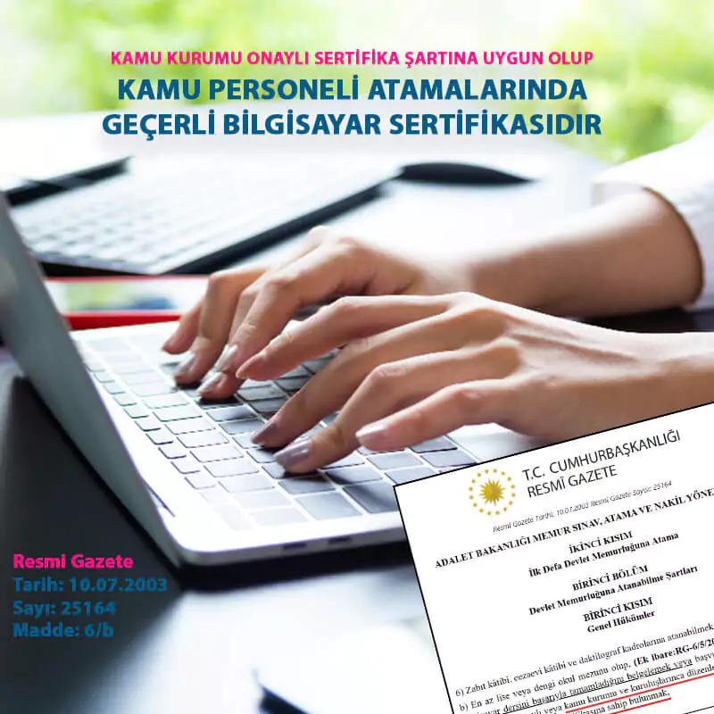 Bilgisayar İşletmenliği eğitimi sertifika programı, kamu ve özel sektör tarafından hemen hemen her çalışandan istenen temel bilgisayar işletmenliği konularını kapsamaktadır. Eğitimde, temel bilgisayar bilgisi, MS Office Word, MS Office Excel ve MS Office Powerpoint programları video ders şeklinde adım-adım uygulamalı olarak öğretilmektedir. Bu eğitim ile verilen “Bilgisayar İşletmenliği Sertifikası”, kamu personel atamalarında, kamu görevde yükselmede ve özel sektör iş başvurularında kullanılabilmektedir.
